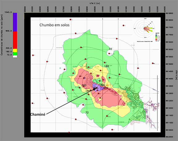 O chumbo era obtido pelo processo de pirometalurgia, que originou grande quantidade de escória e de gases, ricos em chumbo, cádmio e arsênio.