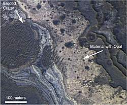 Em alguns locais, a sílica opalina descoberta pela sonda MRO apresenta-se em conjunto com minerais à base de sulfato de ferro, no interior ou ao lado de canais secos, que se acredita terem sido leitos de rios no passado. Isto indica que a água permaneceu sobre a superfície de Marte por um período muito longo.