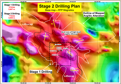 A sondagem preliminar confirma o imenso potencial, retornando intersecções extremamente animadoras como 688 m a 0.92%Cu e 0.90g/t de Au e 568m @ 1,01%Cu e 1,02g/t Au. Esses furos incluem zonas de alto teor que tornam Cascabel ainda mais atrativo.