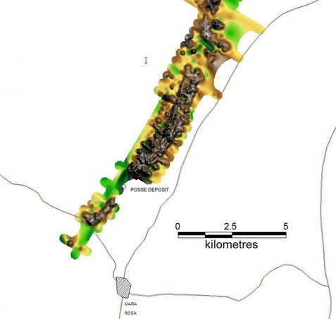Mara Rosa é um jazimento em fase de préviabilidade com 24Mt @ 1,7g/t Au associado ao greenstone de Mara Rosa. A anomalia foi descoberta pela Billiton-Shell na década de 80 e adquirida pela Amarillo Gold.