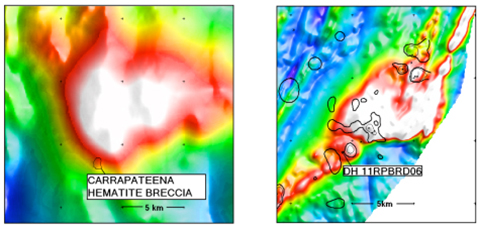 Carrapateena, um depósito tipo IOCG, hospedado em complexo granítico brechado, fica a 100km do gigantesco Olympic Dam.