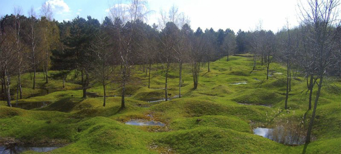 Isso mesmo essa região foi devastada durante a primeira guerra mundial sofrendo intensos bombardeios que penetraram no solo e simplesmente destruíram a geologia original. As bombas caíram na região de Verdun, na França em ambas as guerras mundiais. Foram milhares delas, muitas do tipo que penetrava no subsolo destruindo as estruturas e texturas das rochas subjacentes.