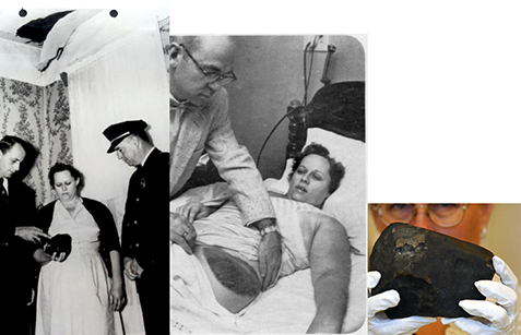 Neste momento a sortuda Elizabeth passou a ser a primeira pessoa na história moderna da humanidade a ser atingida por um meteorito.